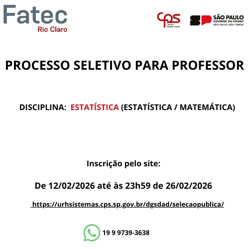 E fevereiro de 2025, a nova Faculdade de Tecnologia do Estado (Fatec) de Rio Claro, deu início as atividades oferecendo dois cursos superiores de graduação tecnológica inéditos no Centro Paula Souza (CPS): Inteligência Artificial (IA)...
