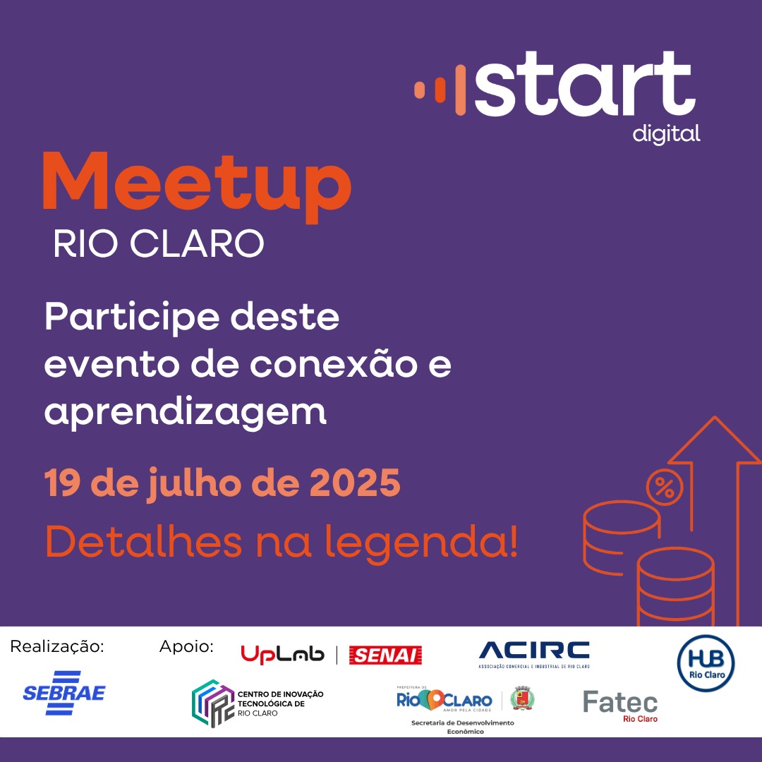 Vem aí o segundo Meetup do Start Digital 2025, um encontro para startups, empreendedores, empresários, investidores, mentores, profissionais acadêmicos, estudantes e todos os apaixonados por inovação e empreendedorismo.